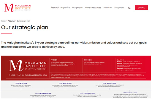 – Malaghan Institute of Medical Research on 2030 strategy development, CAR-T cell Phase 2 clinical trial fundraising strategy with philanthropists, government funding strategy and reporting, and translation research capacity building